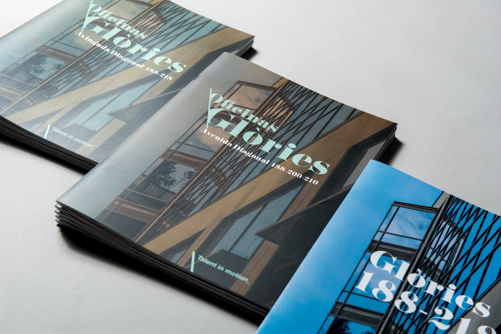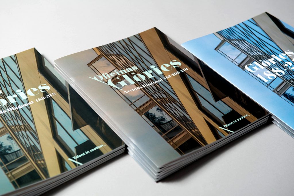 Identity work, naming, and brochure for Glòries building, located at @22 Barcelona, a Hispania property. Filming, leaflets, renders, and customised insert for CBRE and Cushman&Wakefields (real estate consultancy firms responsible for market launch).