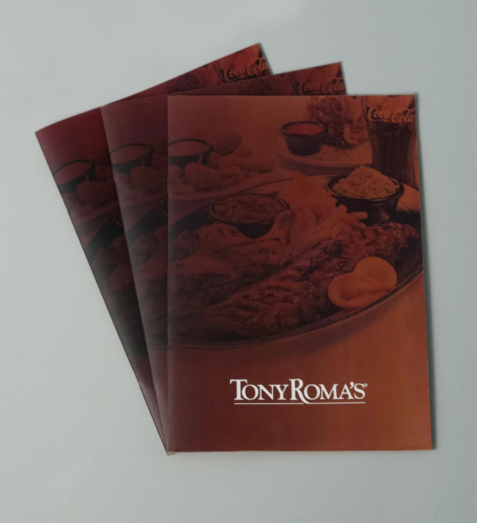 Scroll to Content Print Tony Roma’s Play Pause Unmute Mute Graphic Design | TONY ROMA’S Graphic guideline, multi-lingual menu design, signage, website, and shooting for Tony Roma’s restaurants.